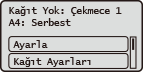 Kağıt çekmecesini açtığınızda geçerli kağıt ayarlar ekranın en üstünde görüntülenir.