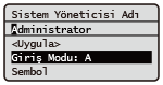Girilen metnin türü <A> veya <a> ise ekranda girilebilir sembolleri görüntülemek için  tuşuna basın veya <Sembol> öğesini seçin ve  tuşuna basın. Girmek istediğiniz sembolü seçmek için / / /  tuşlarını kullanın ve tuşuna basın.