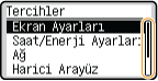 Görüntüleme dili gibi ekranla ilgili çeşitli ayarları değiştirebilirsiniz: <Ekran Ayarları>