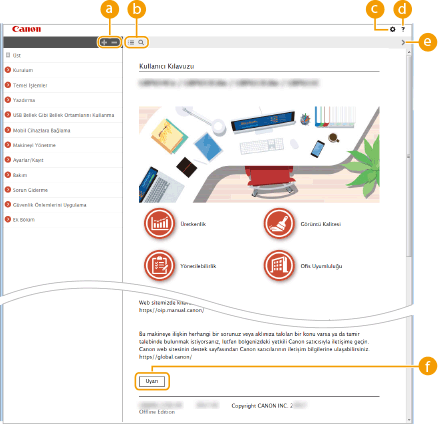 Kullanıcı Kılavuzu'nun nasıl görüntüleneceğine, nasıl arama yapılacağına ilişkin bilgileri ve diğer bilgileri görüntülemek için tıklayın.