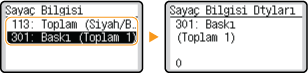 Yazdırılmış toplam sayfa sayısını kontrol edebilirsiniz. Çıktıların sayısı, bilgisayarlardaki verilerin çıktılarının yanı sıra bellek ortamından alınan çıktıları ve liste çıktılarını da içerir.