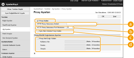[Proxy Kullan] onay kutusunu seçin ve gerekli ayarları belirtin.