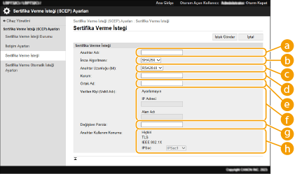 [Sertifika Verme Otomatik İsteği için Zamanlayıcıyı Etkinleştir] seçiliyken sertifika vermek için manuel bir istek gönderilemez. Belirtilen Zamanda Sertifika Verilmesini İsteme