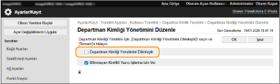 Departman Kimliği Yönetimi yalnızca yerel cihaza kayıtlı kullanıcılar için geçerlidir.