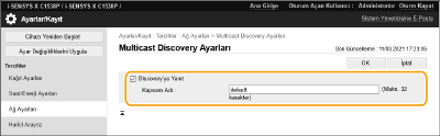 [Multicast Discovery Ayarları] öğelerine tıklayın.