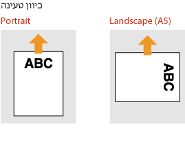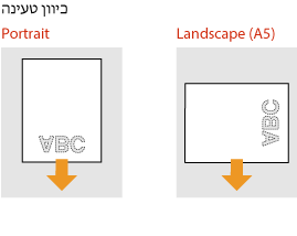 שיטת הטעינה משתנה אם כיוון הנייר שעליו מודפס הלוגו הוא לאורך או לרוחב.