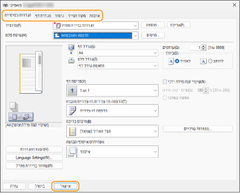 ציין את הגדרות ההדפסה כנדרש, ולחץ על [OK].