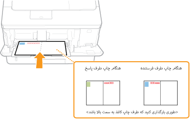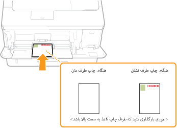اگر کارت پستال از نوع معمولی یا 4 در 1 باشد یا لبه بلند به سمت دستگاه قرار بگیرد، چنانچه کارت پستال برای پاسخ است، آن را طوری قرار دهید که سمت چاپ به طرف بالا و لبه کوتاه به سمت دستگاه باشد.