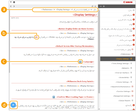 برای مشخص کردن تنظیمات مانند اندازه متن، صفحهآرایی و روش نمایش راهنمای کاربر کلیک کنید.