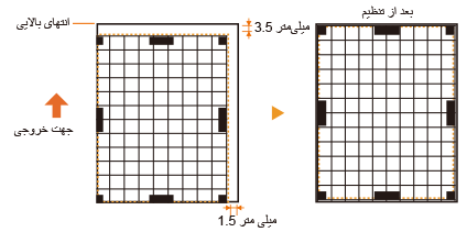 لبه جلویی کاغذ خروجی همان لبه بالای چاپ نمونه است. هنگام برداشتن کاغذ بهخاطر بسپارید که کدام لبه، لبه فوقانی است.