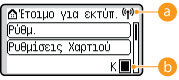 Μπορείτε να χρησιμοποιήσετε αυτό το πλήκτρο για να καθορίσετε το μέγεθος και τον τύπο του χαρτιού που έχετε τοποθετήσει στο συρτάρι χαρτιού και στον δίσκο πολλαπλών χρήσεων.