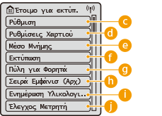 Με το κουμπί αυτό αποκτάτε πρόσβαση στις <Ρυθμίσεις Λειτουργιών>, <Προτιμήσεις> και πολλές άλλες ρυθμίσεις της συσκευής.
