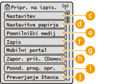 S tem gumbom zaženete <Nastavitve funkcije>, <Izbirne nastavitve> in številne druge nastavitve naprave.