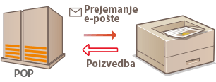 V tem poglavju je opisano, kako določite nastavitve za prejemanje in tiskanje e-poštnih sporočil v tej napravi. Z računalnikom določite nastavitve za prejemanje e-poštnih sporočil, na nadzorni plošči naprave pa določite nastavitve za tiskanje e-poštnih sporočil. Te nastavitve je mogoče konfigurirati samo s skrbniškimi pravicami.