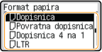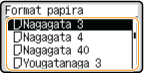 Registriranjem često korištenih formata papira na gumbe <S1> do <S5> možete ih opozvati tako da odaberete <Registrirani formati>.Registriranje papira slobodne veličine (papir prilagođene veličine)