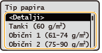 Da biste provjerili detaljne postavke vrste papira, odaberite <Detalji>