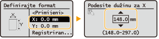 Odaberite <X> ili <Y> kako biste putem numeričkih tipki ili  /  unijeli duljinu svake stranice.