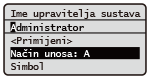 ili odaberite <Simbol> pa pritisnite kada je vrsta teksta koji unosite <A> ili <a> da bi vam se prikazali znakovi koje možete unijeti na zaslon. Pomoću tipki / / / odaberite simbol koji želite unijeti pa pritisnite . |
