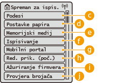 Stavke prikazane na zaslonu <Početni prikaz>