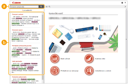 Kliknite da biste prikazali informacije o tome kako pregledati Korisnički vodič, kako pretraživati itd.