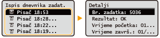 odaberite dokument kojem želite provjeriti povijest.Ako je dokument uspješno ispisan, prikazat će se poruka <OK>, a ako se dokument nije uspio ispisati zbog otkazivanja ili zbog neke pogreške, prikazat će se poruka <Error>.
