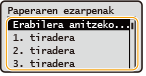 Bistaratutako paper-tamaina/mota ez badator bat kargatutako paper-tamaina/motarekin, hautatu <Paperaren ezarpenak> eta hautatu papera kargatuta dagoen paper-iturria.