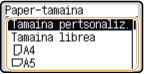 Sarritan aldatu behar baduzu kargatu beharreko paperaren tamaina, ezarri hona: <Libre>; honek ezarpenak aldatzeko beharrezkoak diren pausuak murriztuko ditu. Hala ere, kontuan izan konfigurazio horri esker makinak inprimatu dezakeela, baita inprimagailuaren kontrolatzaileko paper-motaren ezarpena eta makinan benetan kargatutako paper-motaren artean desorekarik badago ere.