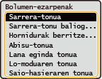 Hautatu ezarpen bat  hautatu <Bai> edo <Ez>.
