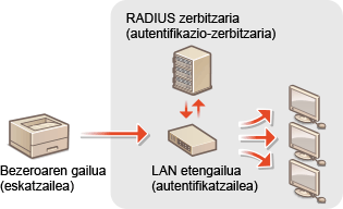 Gailu bat 802.1X sarera konektatzen eta komunikazioa ezartzen saiatzen bada, gailuak erabiltzaile-autentifikazioa burutu beharko du konexioa erabiltzaile baimendu batek egina dela frogatzeko. RADIUS zerbitzariak autentifikazio informazioa jaso eta egiaztatzen du eta sarerako komunikazioa baimentzen edo baztertzen du autentifikazioaren emaitzaren arabera. Autentifikazioak huts egiten badu, LAN etengailu batek (edo sarbide-puntu batek) sarearen kanpoaldetiko sarbidea blokeatuko du. Makina 802.1X sare bati konektatu ahal zaio bezero-gailu gisa. IEEE 802.1X autentifikazioaren ezarpenak ezartzea