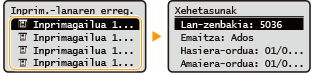 hautatu nahi duzun dokumentua bere historia ikusteko.<Ados> agertuko da dokumentu bat ondo inprimatu bada eta <Error> agertuko da dokumentu bat ez bada inprimatu, ezeztatu egin delako edo erroreren bat gertatu delako.