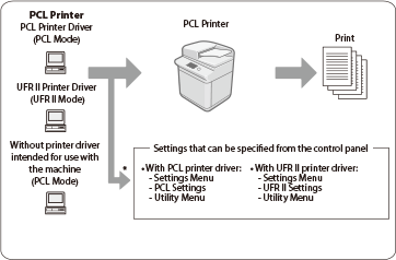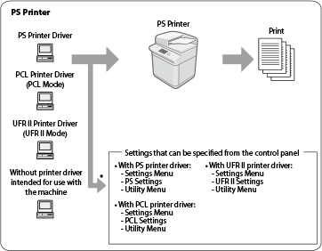 Differences in Operation with UFR II, PCL, PS, and Direct Print Printers