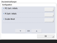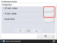 Unter folgenden Bedingungen kann der Speicher nicht initialisiert werden: Während Druckdaten empfangen oder gedruckt werden. (Sie sollten das Kabel zwischen System und Hub entfernen, damit keine Druckdaten empfangen werden können.) Während Fonts installiert oder deinstalliert werden. Die im Folgenden erläuterten Schritte beziehen sich auf die Initialisierung des PCL-Speicherbereichs. Um den PS-Speicherbereich zu initialisieren, führen Sie die gleichen Schritte aus, mit Ausnahme von Schritt 4, wählen Sie hier [PS Spch. initialis.]. |