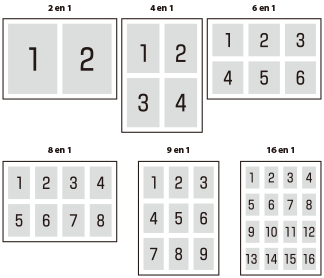 Es posible imprimir varias páginas de datos del archivo PDF en una sola hoja de papel. Las páginas se imprimen desde la parte superior de izquierda a derecha.