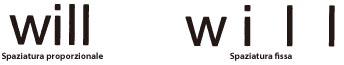 Ogni carattere ha una larghezza diversa rispetto ad un altro carattere della stessa font e con la stessa altezza. Ad esempio, la lettera W è più larga della lettera I. I caratteri di diversa larghezza possono essere stampati in due modi: tutti i caratteri possono essere stampati con la stessa spaziatura tra un carattere e l'altro, senza tener conto della loro larghezza, oppure la spaziatura tra i caratteri può essere impostata in base alla loro larghezza. Il primo sistema viene chiamato spaziatura fissa e il secondo spaziatura proporzionale.