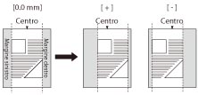 Se si aumenta il valore di impostazione, l'immagine viene spostata verso destra (X) sulla carta. Diminuendo il valore di impostazione, l'immagine viene spostata verso sinistra (X) quando viene stampata.