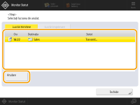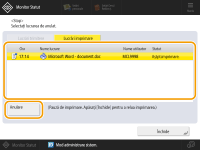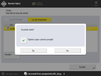 (Stop) pe panoul de control în timp ce se procesează o lucrare de trimitere/imprimare şi se afişează un ecran care duce către <Lucrări trimitere>/<Lucrări imprimare>, lucrarea de trimitere/imprimare în derulare se întrerupe şi apare ecranul <Lucrări trimitere>/<Lucrări imprimare>.