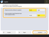 (Start). Selectaţi <Oprit> dacă doriţi să începeți copierea manual, apăsând