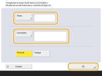 Pentru a înregistra un buton personal, trebuie să vă conectaţi prin gestionarea autentificării personale. Configurarea setărilor de gestionare a autentificării personale Pentru a înregistra un buton partajat, trebuie să vă conectați cu drepturi de administrator. Dacă selectaţi <Informaţii autentificare conectare dispozitiv> pentru <Info.utiliz.pt. transmisie fişiere/Autentificare navigare>, o parolă pentru o destinaţie fişier nu se stochează într-un buton personal. <Info.utiliz.pt. transmisie fişiere/Autentificare navigare> Pentru informaţii despre numărul maxim de butoane personale şi partajate care pot fi înregistrate, consultaţi Funcţii de administrare. Butoanele personale nu se pot înlocui cu butoane partajate şi viceversa. Pentru a realiza acest lucru, reapelaţi setările şi înregistraţi un alt buton din <Meniu>. Menţineţi apăsat un buton pentru a-i modifica numele/comentariul sau pentru a-l muta/şterge. Aceleaşi operaţii (modificarea numelui/comentariului unui buton sau mutarea/ştergerea unui buton) pot fi efectuate din <Meniu> din ecranul <Acasă>. Personalizarea ecranului <Pagină de pornire> Butoanele personale pot fi partajate între mai multe dispozitive prin sincronizarea datelor personalizate. Lista articolelor care pot fi personalizate Setările care pot fi înregistrate în butoanele personale/partajateFuncţiile şi setările care pot fi înregistrate în butoanele personale/partajate sunt indicate mai jos. Setările care pot fi înregistrate în <Setări Favorite> pentru funcţia <Copiere> Reducerea operaţiilor de copiere Setările care pot fi înregistrate în <Setări Favorite> pentru funcţia <Scanare şi Transmitere> Funcţii de scanare utile Setările care pot fi înregistrate în <Setări Favorite> pentru funcţia <Scanare şi Stocare> Ecranul de setare şi operaţiile pentru scanare în vederea salvării Salvaţi locaţiile funcţiilor <Scanare şi Stocare> şi <Acces. fişiere stocate> Utilizarea spaţiului de stocare Comenzi rapide către ecranul Caracteristici de bază pentru funcţia <Curier intr Fax/I-Fax> Accesul la un server şi parola de conectare pot fi înregistrate în butoanele personale/partajate. Acest lucru este comod pentru a nu mai introduce parola când reapelaţi butonul înregistrat. Dacă doriţi să setaţi parola în setările stocate în butonul înregistrat, deoarece importaţi frecvent setările dintr-un buton personal sau partajat către un alt aparat şi doriţi să împiedicaţi utilizatorii să pretindă că sunt alţi utilizatori, excludeţi parola la înregistrare. Importul/exportul butoanelor înregistratePuteți importa și exporta butoanele personale/partajate din Remote UI (IU la distanță). Importul/exportul tuturor setărilor În funcție de modelul de la care se importă butoane, este posibil să nu puteți importa toate setările pentru butoanele partajate/personale. Pentru mai multe informații, contactați dealerul sau reprezentantul dumneavoastră de service. |