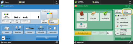 Dacă utilizaţi frecvent aceeaşi combinaţie de setări pentru copiere şi scanare, este convenabil să înregistraţi aceste setări ca <Setări Favorite>.