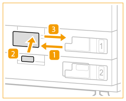 ![]() | Lipiți eticheta cu formatul hârtiei pentru a corespunde noului format de hârtie de pe foaia de suport. |