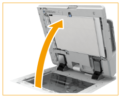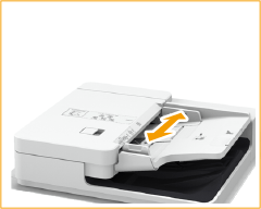 Când introduceți originale subțiri A3 sau A4R în alimentator, ridicați dispozitivul de fixare a originalelor pentru a preveni șifonarea originalelor scanate.