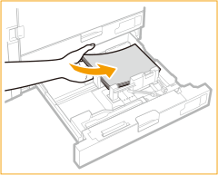 La modificarea formatului şi a tipului de hârtieDacă prima coală de ieșire nu poate fi scoasă fără probleme din tava de ieșire, vă recomandăm să așezați în prealabil o coală albă de aceeași dimensiune sau mai mare decât hârtia de ieșire în tava de ieșire. |