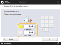 Specificaţi lungimea părţii <X> şi a părţii <Y>. Apăsaţi <X> sau <Y> pentru a introduce lungimea fiecărei părţi utilizând tastele numerice.