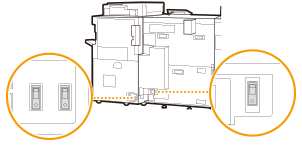 Întrerupătoarele sunt instalate în două locuri pe motorul de imprimare și într-un loc de pe centrul de fixare, în total trei locuri. Asigurați-vă că testați toate ruptoarele. Puteți începe inspecția de la orice ruptor. Procedura este aceeași. |