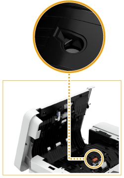 Curăţaţi rolele din interiorul capacului alimentatorului.