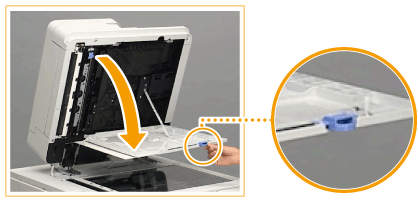 | Închideți capacul zonei de scanare a documentelor până când se fixează în poziție. |