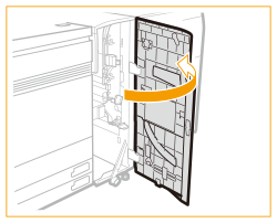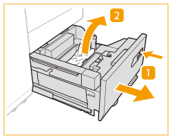![]() | Deschideți capacul frontal al echipamentului „POD Deck-F” secundar și consultați Eliminarea blocajelor de hârtie din interiorul capacului frontal. |