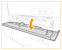 ![]() | Închideţi uşor magazia de hârtie până când se aude un declic. ![]() Când închideţi magazia de hârtie, aveţi grijă să nu vă prindeţi degetele deoarece vă puteţi accidenta. Nu loviți puternic magazia pentru hârtie atunci când o deschideți/închideți, deoarece acest lucru poate duce la funcționarea defectuoasă, la deteriorarea aparatului sau la alinierea incorectă a imaginii. ![]() Asigurați-vă că ați încărcat hârtia corect în zona de stivuire atunci când închideți magazia de hârtie. Dacă hârtia este încărcată incorect sau rămâne în zona teancului, încărcați din nou hârtia în mod corespunzător. Poate provoca îndoirea hârtiei sau blocarea acesteia. |