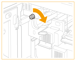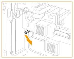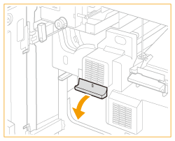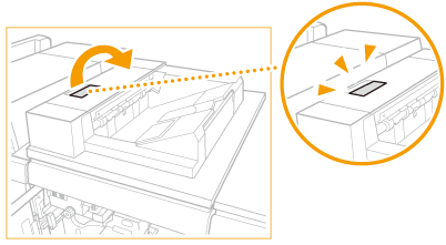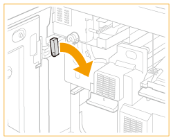 Trageţi pârghia ghidajului de evacuare a hârtiei pentru a deschide capacul.