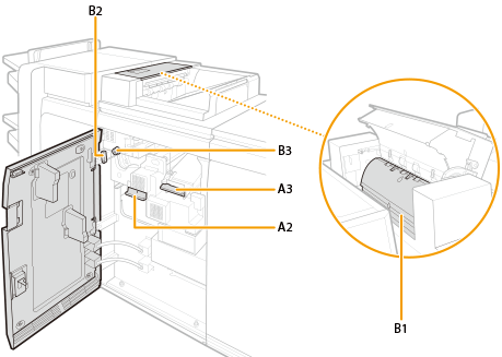 Scoateţi hârtia rămasă în interiorul B1.